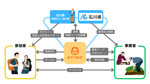 石川県の関係人口の創出・拡大を目的に、人手不足に悩む県内の事業者と、石川県に行ってみたいという参加者をマッチング。