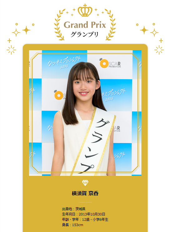 初代グランプリには、茨城県出身の小学6年生・横須賀京香(12)が受賞。