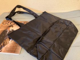 肩掛け&大容量で使いやすい! ※出したばかりなので少しシワがよっていますが、使っているうちに気にならなくなります。早くシワを取りたい方は、本誌8頁にも載っていますがスチーマー(必ず低温設定100度以下)で蒸気をあててみてください。普通のアイロンは使用しないようご注意!
