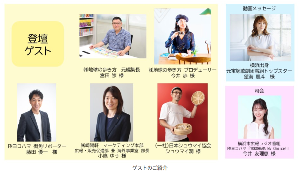 本イベントでは、観覧席の様子も含め、音声、動画、写真等で記録し、横浜市の広報ラジオ番組「YOKOHAMA My Choice!」、インスタグラム等で配信予定です。撮影された動画・画像には参加者の姿が含まれる可能性があります。