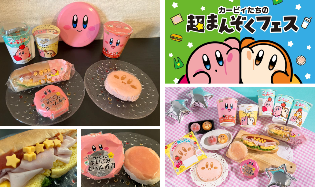 【対象商品】:「カービィのすいこみ生ハム寿司」「カービィのふんわりたまごのワープスターロール」「くしいんぼうカービィのりんご蒸しパン」「しゅわもこ!カービィのりんごゼリードリンク」「食べマスモッチ 星のカービィ」