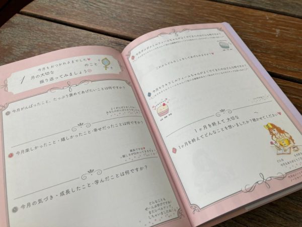 こちらの記事で基本情報をお伝えしましたが、この手帳では、スケジュールを書くという目的だけでなく、「自分を好きになる」「自己肯定感を育てる」ワークが多数入っています。