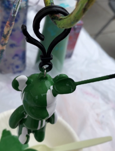 ただ、「勿体ない」が口癖の性格の筆者は、なるべく下に溜まった絵具を無駄なく使いたいと思い、🐻クマちゃんの後ろ姿への「追いマーブル」は用意されているスプーンですくって彩色しました。