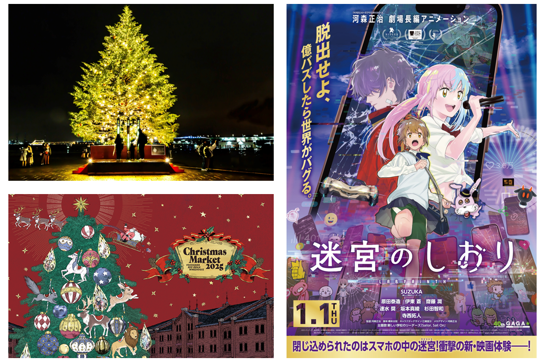 【連載2】11/21🎄点灯式 & セレモニーを実施🎉「新しい学校のリーダーズ」が河森正治監督と一緒に登壇!横浜が舞台の劇場最新作『迷宮のしおり』主題歌「Sailor, Sail On」と連動した目と耳で楽しめる巨大クリスマスツリー✨🎄✨劇場長編アニメーション『迷宮のしおり』コラボコンテンツご紹介♪『Christmas Market in 横浜赤レンガ倉庫』