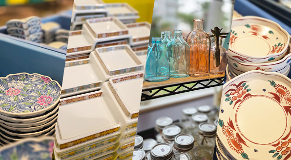 和食器や洋食器、花器、インテリア雑貨、大小さまざまな家具などを販売。ここでしか出会えない宝物が待っています。マイバッグを持参して、お気軽にご来場いただけます。