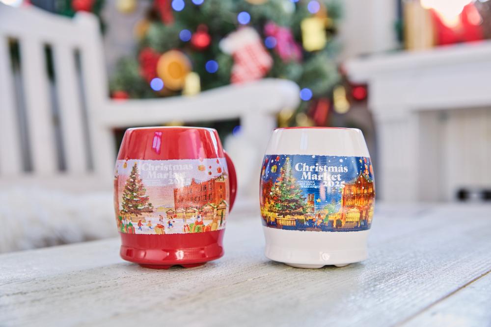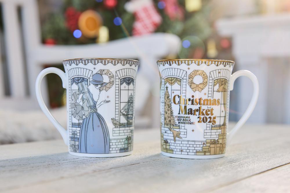 毎年楽しみに集めているファンも多いオリジナルマグカップ。今年のデザインは、“みなとみらいの夜景を背にした横浜赤レンガ倉庫に雪とプレゼントが降りしきる12月24日の夜”を描いた白、“みなとみらいの港を背にした朝焼けの横浜赤レンガ倉庫に雪とプレゼントが降り積もる12月25日の朝”を描いた赤、の2色展開。