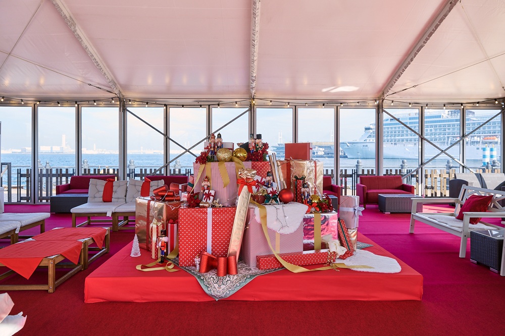 完全個室「プレミアムラウンジ」が5棟限定で今年も登場。本イベントを象徴する巨大クリスマスツリーと横浜港を臨める特等席で、ラウンジ限定のスペシャルメニューを味わいながら、人混みを避けて大切な人との時間をゆったり楽しめます。