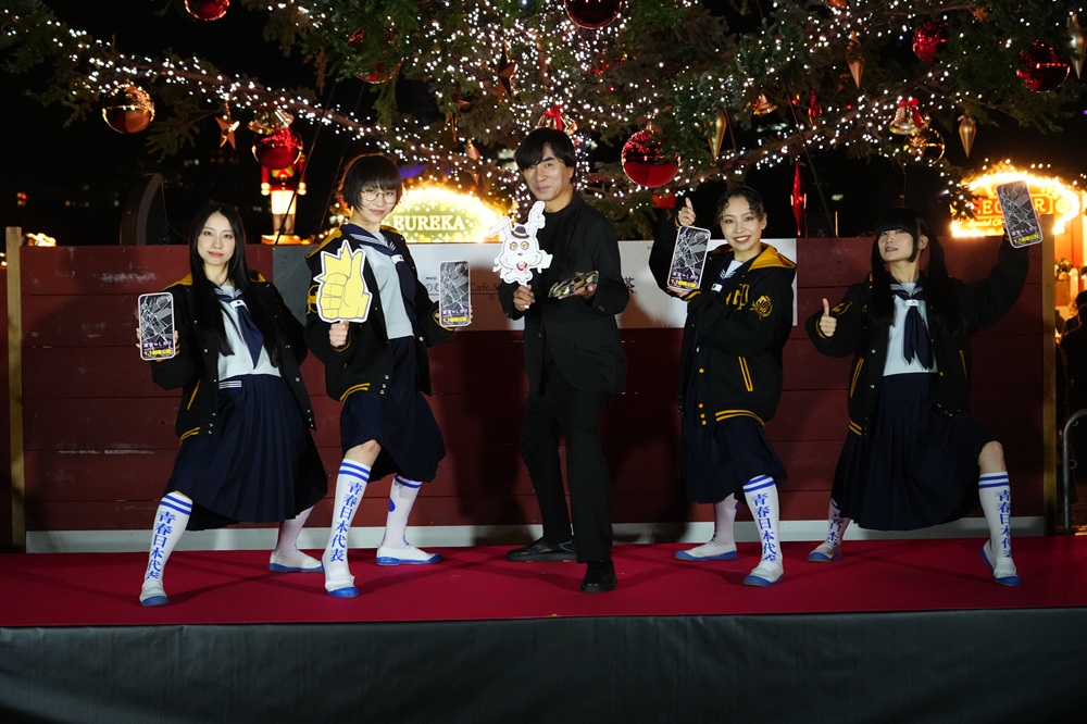 河森正治監督初のオリジナル劇場長編アニメーション『迷宮のしおり』主人公・栞の声をつとめた新しい学校のリーダーズSUZUKAと、主題歌を担当した新しい学校のリーダーズのメンバーと共に河森監督も登壇。映画の舞台となった横浜でクリスマリツリー点灯式が実施されました