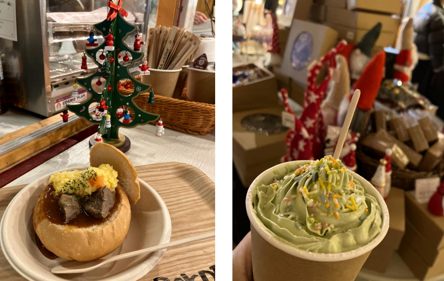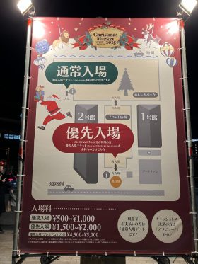 せっかくクリスマスの可愛いドリンクや食べ物を購入できても、外に設置されている飲食スペース(机とベンチ)はほぼ満席だったので、どこで食べてよいか困るほどでした...。そのため平日の夜や土日など、人気の日時に行く方は対策が必要です。