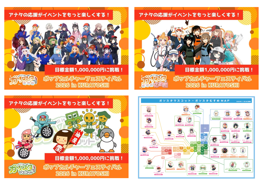 このたび、皆さんと一緒に【ポップカルチャーフェスティバル2026 in KURAYOSHI】を開催し、さらに範囲を広げた全国規模の【ガソスタむすめステッカーラリー】を実現したいと思い、クラウドファンディングに挑戦させていただきます。