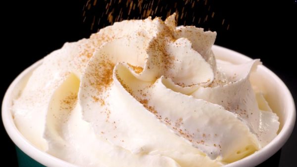 ブランドの特徴でもある天然ブルボンバニラエキスを使用した、ふわふわのホイップクリームをたっぷり乗せて、仕上げに横浜バニラオリジナルのウィンタースパイスをさらに振り掛ければ完成。