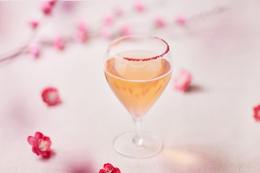 アフタヌーンティーの気分をより一層高める、梅を使用したオリジナルモクテルを提供します。フルーティーな梅シロップをベースに、ノンアルコールのスパークリングワインで割ったオリジナルモクテルは、爽やかな酸味と甘みのバランスを楽しめます。さらに、グラスの縁には細かく砕いた梅の実をあしらいました。飲み進めていく中で塩味が少しずつ加わり、最後まで飽きない美味しさです。