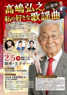『髙嶋弘之 私の好きな昭和歌謡 in 銀座』2026年2月5日(木)開催🎉 91歳を超えてなお、現役でますますご活躍✨そのダンディでパワフルなお姿は多くのファンに希望を与えるスター!