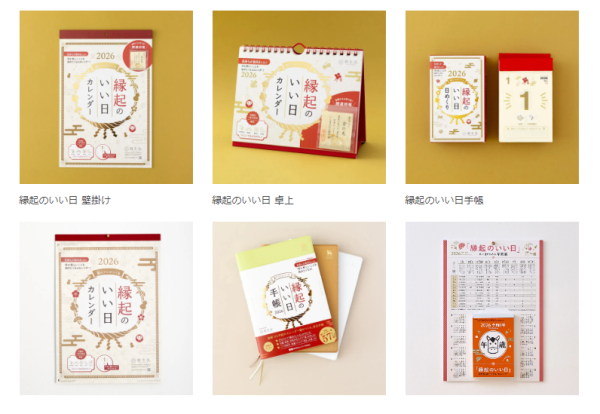 また、新日本カレンダーでは、現在販売中の2026年版のカレンダー商品に、特別付録として「縁起のいい日 年間カレンダー」を付けてご提供しています。