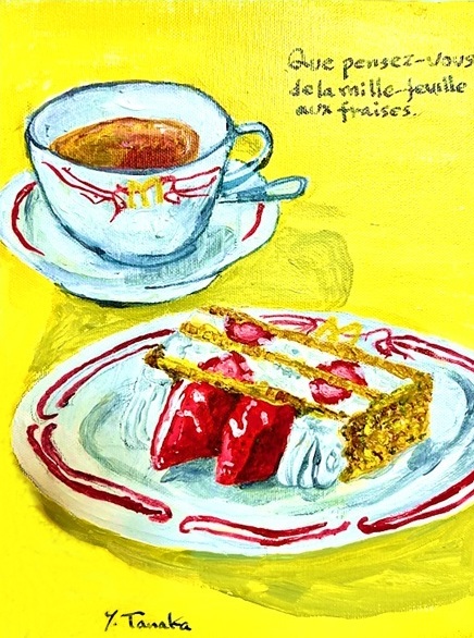 「マキシム・ド・パリ」で培われた至高のホスピタリティと、パリ・東京の二つの都市で磨かれた感性。田中氏が描く世界には、美食の殿堂を彩ったスイーツや愛らしい動物たちが、鮮やかかつ温かなタッチで描かれています。