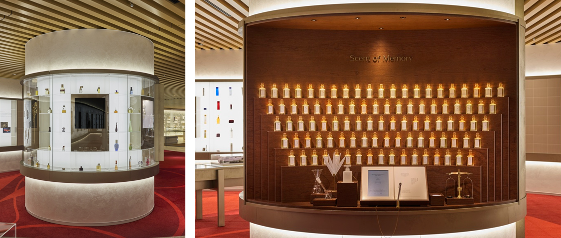 時代を代表するフレグランスを展示するとともに、記憶の中に生きる香りを辿るコーナーです。嗅覚は、五感の中でもっとも脳に近く、記憶や感情と強く結びついているといわれています。体験展示【Scent of Memory】にある「記憶の調香台」では、”あなた”の中にねむる記憶を呼び起こし、記憶の欠片を調香し、”あなた”だけの特別な記憶から生まれた香りを体験することができます。