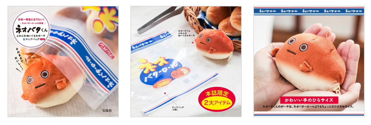 🍞ネオバターロールの妖精ネオバタくん ふわふわぬいぐるみポーチ&ジップバッグBOOK【公式頁】