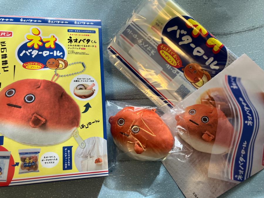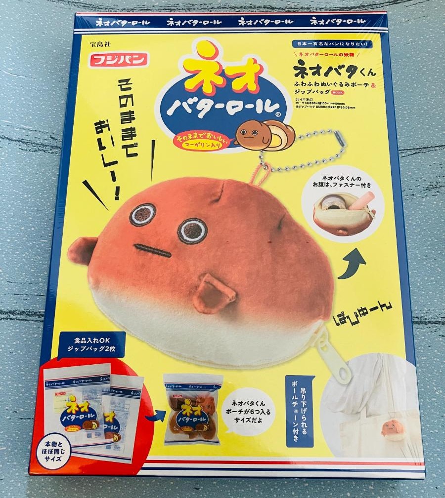 【開封レビュー】売り切れ続出!🍞『ネオバターロールの妖精✨ネオバタくん ふわふわぬいぐるみポーチ&ジップバッグBOOK』📚書店で見つけたらラッキー🎉【宝島社】公式チャンネルでは即完売!本物のネオバターロール(フジパン)と並べてみました♪