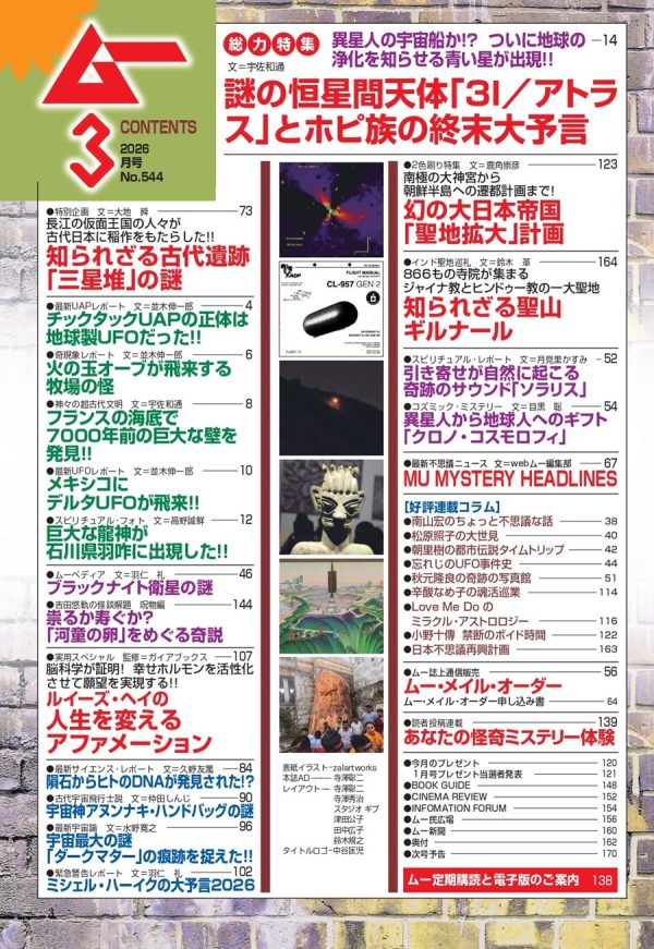 月刊「ムー」3月号発売🎉総力特集は、謎の恒星間天体「3I/アトラス」とホピ族の終末大予言