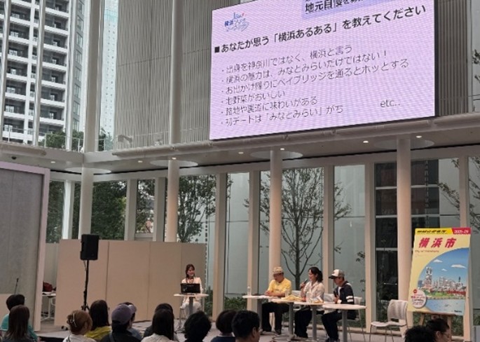 「住所を書く時、県名を省略しがち」「遠くから車で帰ってきたとき、横浜ベイブリッジを渡るとホッとする」など、横浜市民が思わずうなずきたくなるような“あるある”が参加者から寄せられ、会場は大きな笑いと拍手で盛り上がりました。