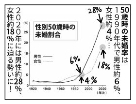 現在、 50歳時の未婚率は男性3割、女性2割