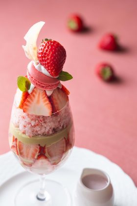 いちごとバジルのソルベが相性抜群のスペシャルスイーツ「いちごショートケーキパフェ」も嬉しい“いちご尽くし”の贅沢アフタヌーンティー。